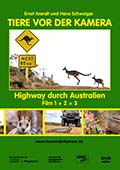 Highway durch Australien (Film 4) - Im heißen Herz Von Alice Springs stracks nach Osten durch die felsige Harts Range, dann immer weiter auf dem Plenty Highway bis nach Queensland und wieder zurück. Die 1.500 km sehen auf der Australienkarte nicht nach viel aus, sind aber voller Tier- und Landschaftserlebnisse. Ein Laubenvogel baut an seiner Renommier-Immobilie, Kakadus trinken im Flug. Viel Sehenswertes direkt am Weg und seltene Harlekintauben mitten auf dem Highway. Highway durch Australien (Film 5) - Auf nach Nordost Auf dem Stuart Highway nach Norden bis Darwin, ein kleiner Schlenker durch den Kakadu-Nationalpark und dann nach Osten ins Atherton Tableland, 4.000 km voller Tiererlebnisse. Am Wegrand: Wellensittiche, Zebrafinken, Babbler, Apostlebirds, nächtliche Flughunde, Krokodile, Papageienschwärme, Kraniche und Glücksschwalben. Die Kängurus mischen sich unter die Golfspieler und dann das Unmögliche, ein Känguru hoch oben im Baum. Highway durch Australien (Film 6) - Bis zur Nordspitze Die Strecke zur Nordpitze, die Cape York Road ist Legende, jeder echte Australier muss sie einmal fahren und das Auto dabei ruinieren. Legenden sind auch Tiere, die dort leben, wie Palmkakadu und Tüpfelkuskus. Von Brisbane bis zum Cape stoppen wir für Koala, Helmkasuar, Waran, Riesenlaubfrosch, Riesenratte, Rotflügelsittich. Und das Schnabeltier zeigt Verhalten das Arendt/Schweiger noch nie zuvor im Freiland gesehen haben. DVD-Video Breitbild 16:9 3 Filme à 44 Minuten auf einer DVD Preis 19,95 Euro Zu beziehen über: ERA-FILM Produktion